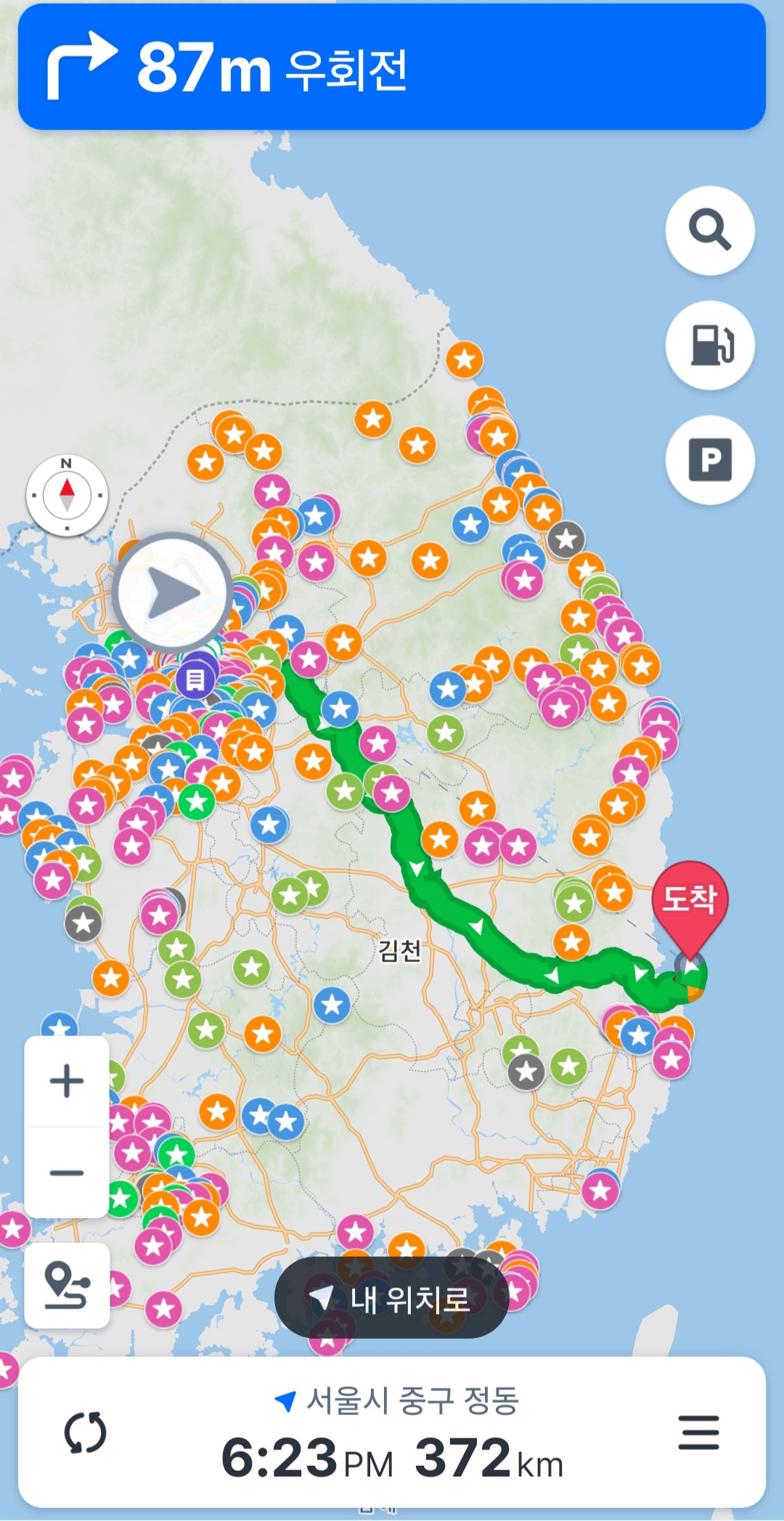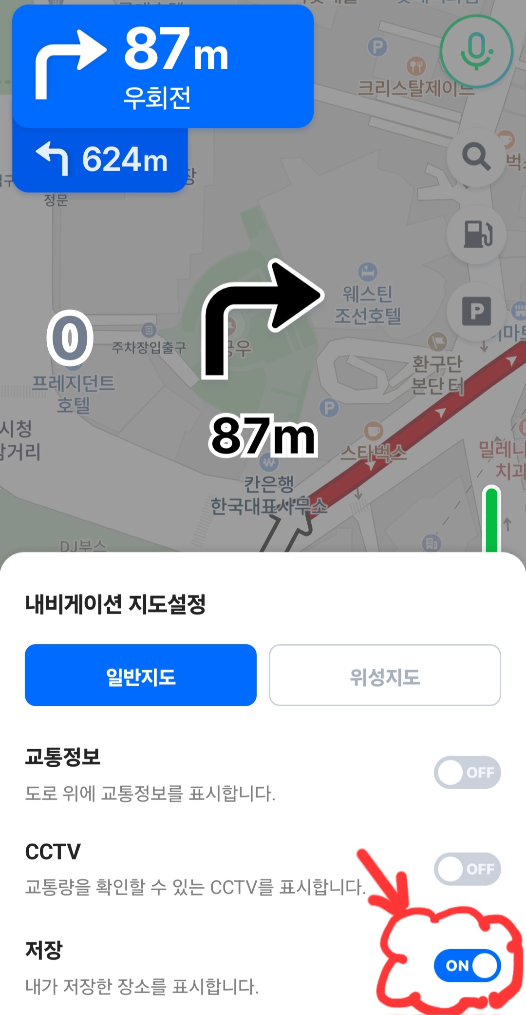목적지 찾아가는 동작중에는 즐겨찾기 마크가 지도상에서 보이지 않아.