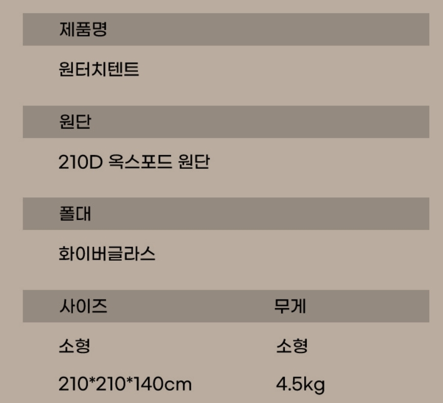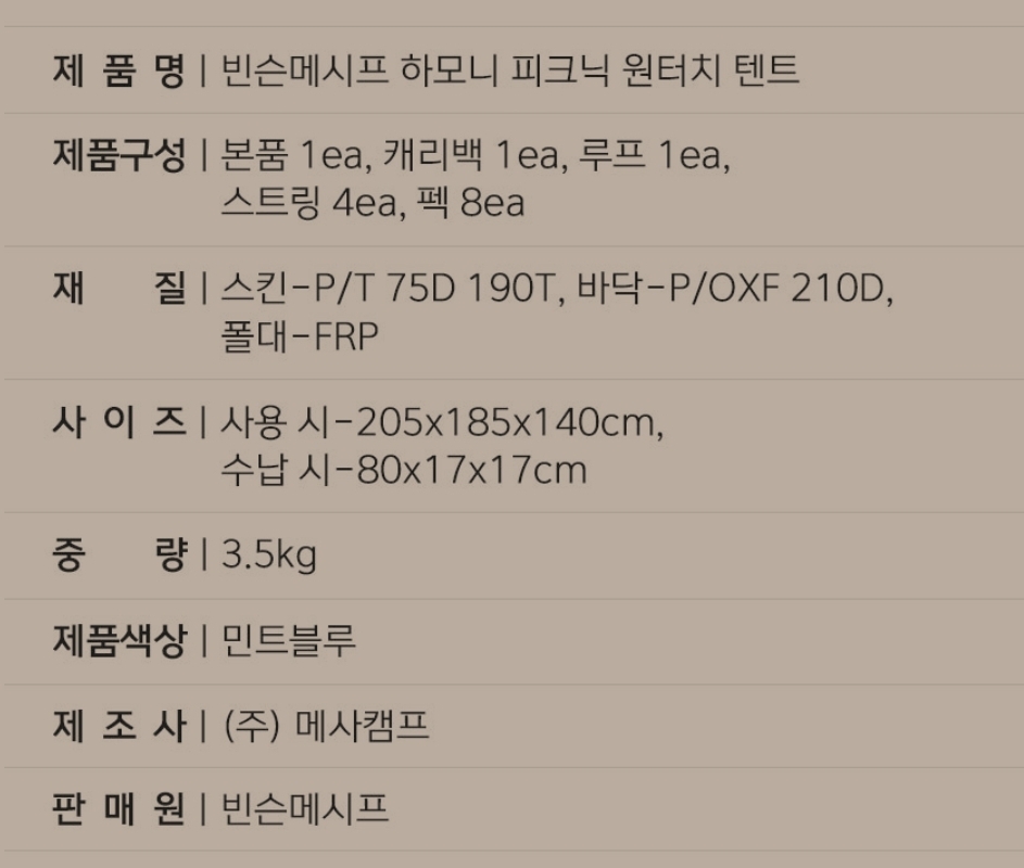 네임드 브랜드 제품이 많은 텐트와는 다르게