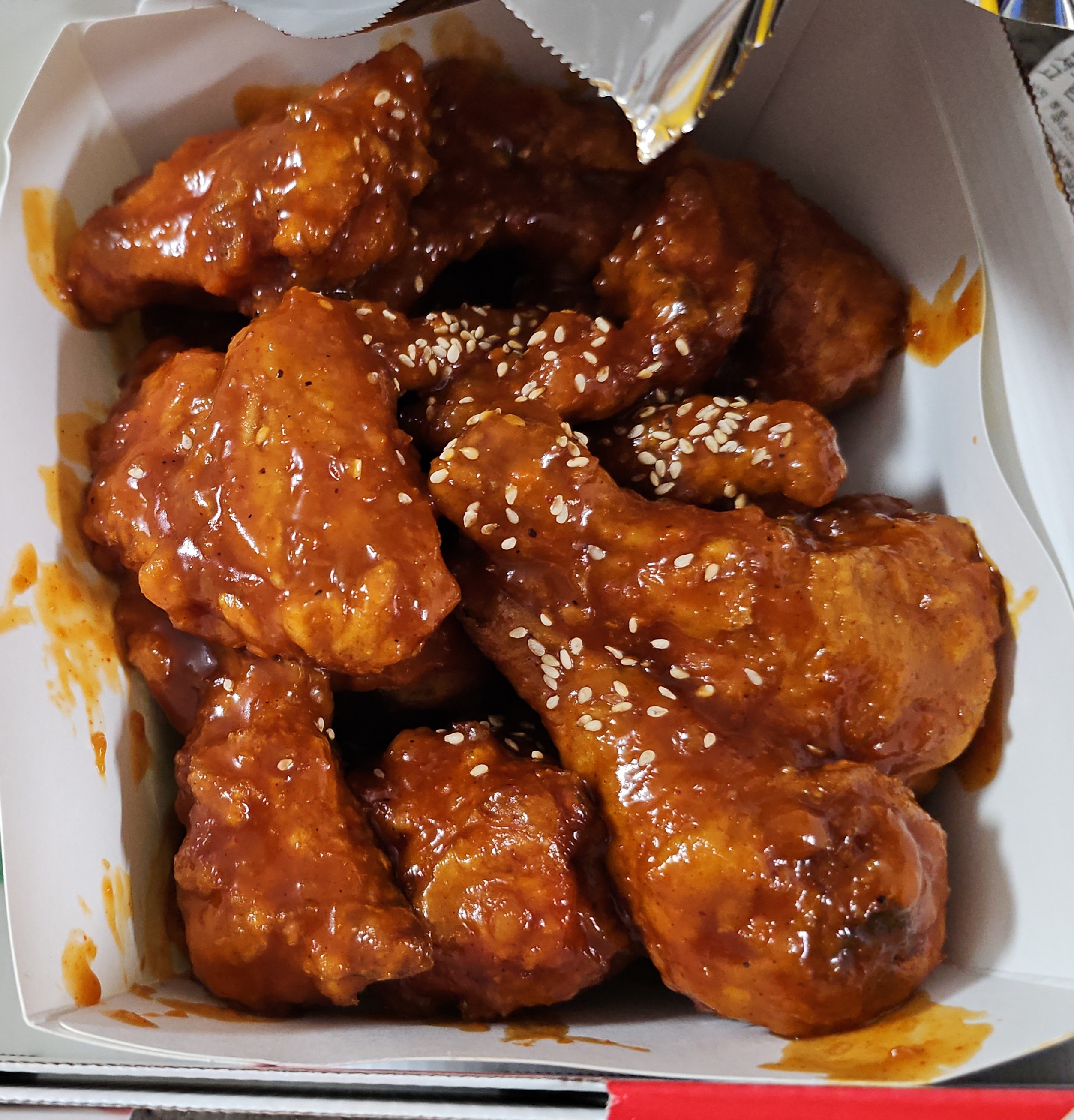 양념맛을 위해서, 바삭함을 포기한 치킨.