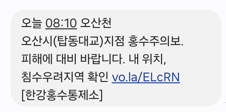 7월 18일 오전에 받은 '안전재난문자' (안재문)