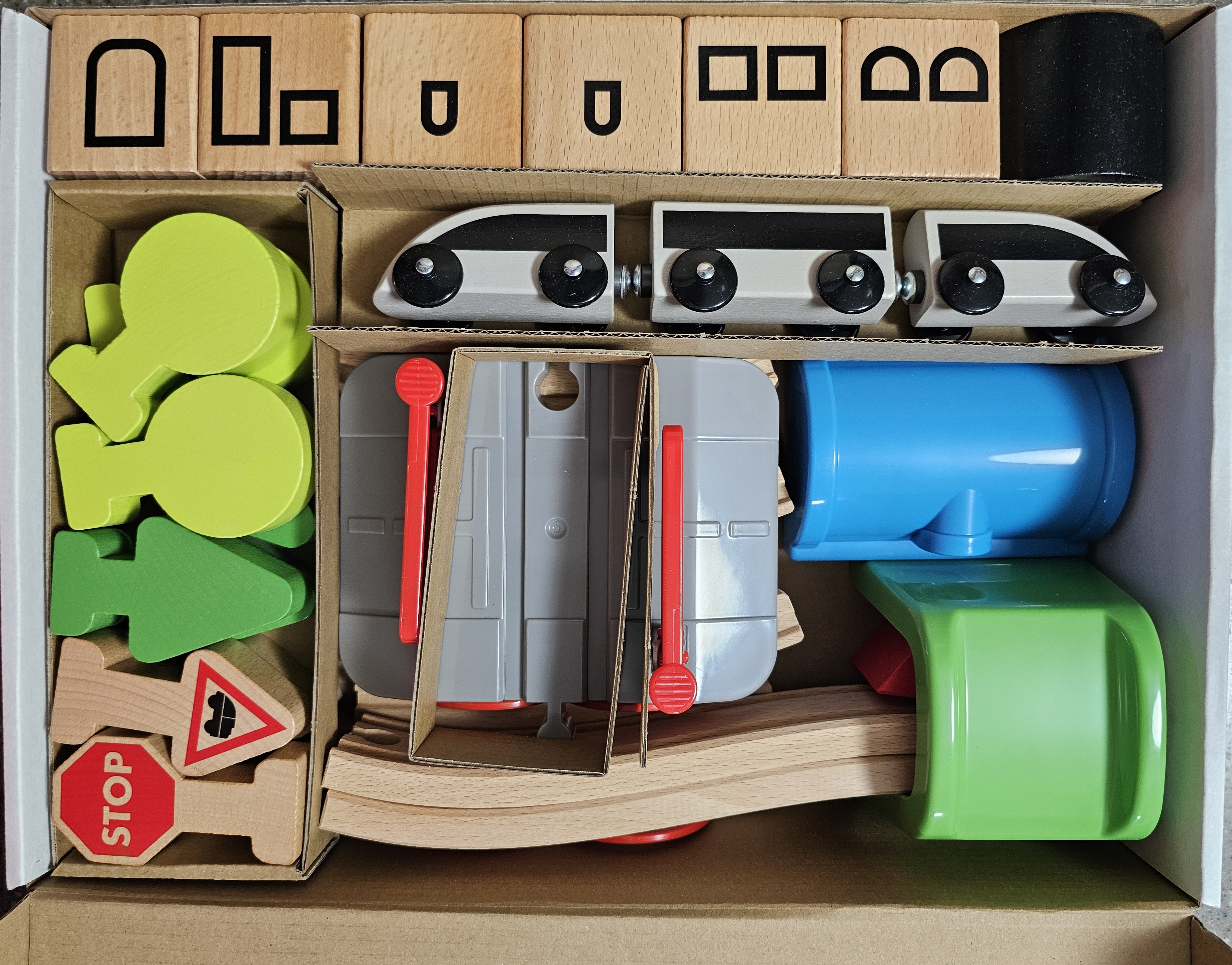 LILLABO 릴라보 기차놀이세트45 이 세트에는 곡선, 다리, 터널, 장벽 등 기찻길을 만드는 데 필요한 모든 것이 있습니다. 운전자가 올바른 방향으로 가고 필요할 때 멈출 수 있도록 도와주는 표지판