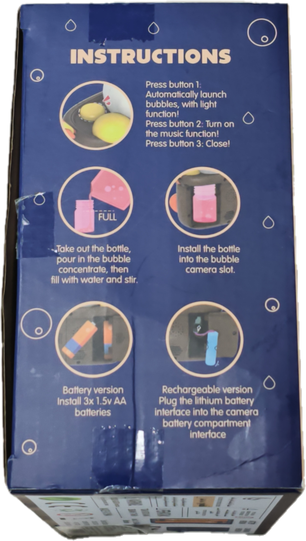 Take out the bottle, pour in the bubble concentrate, then fill with water and stir.