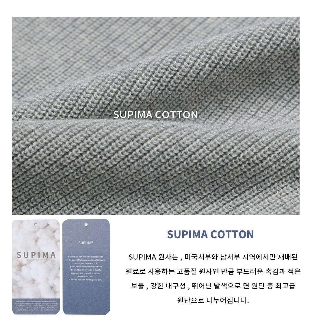 SUPIMA 원사는, 미국서부와 남서부 지역에서만 재배된 원료로 사용하는 고품질 원사인 만큼 부드러운 촉감과 적은 보풀, 강한 내구성, 뛰어난 발색으로 면 원단 중 최고급 원단으로 나누어집니다