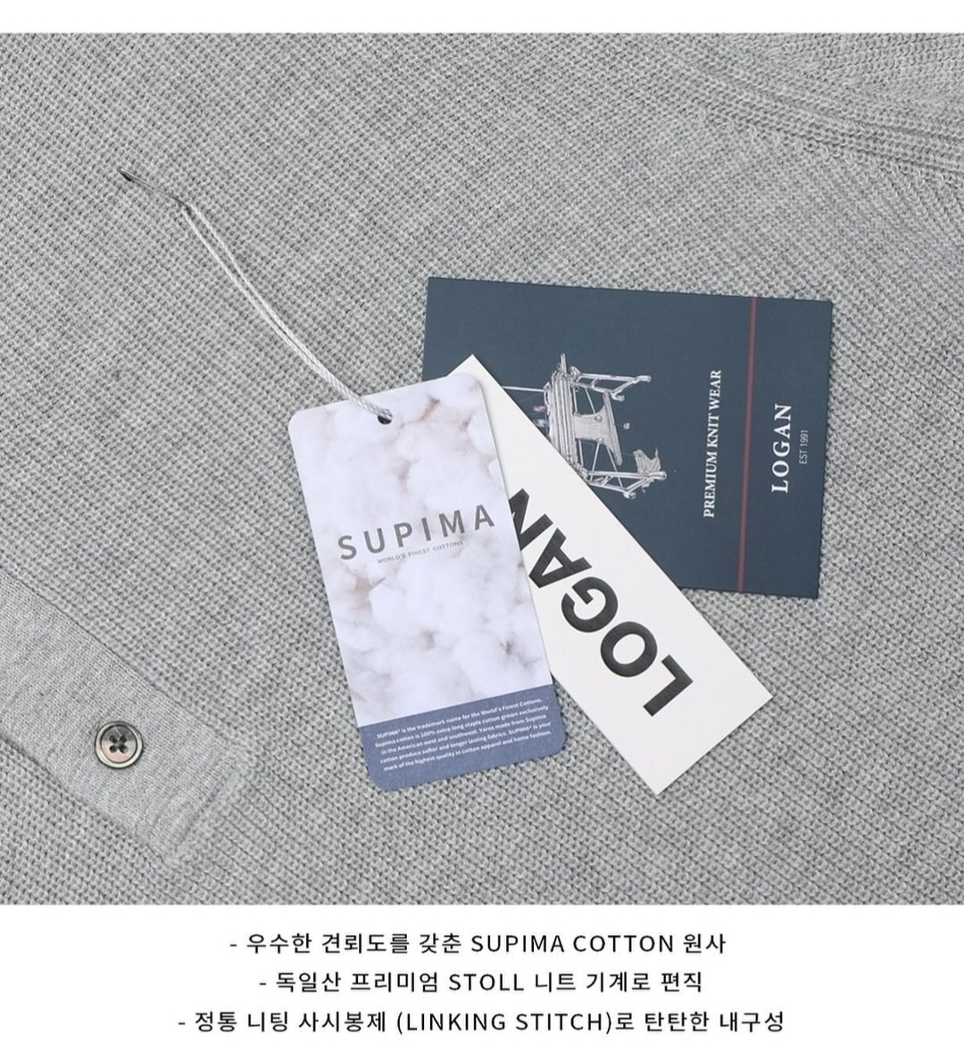 Logan 수피마 하찌 버튼카라니트 수피마코튼