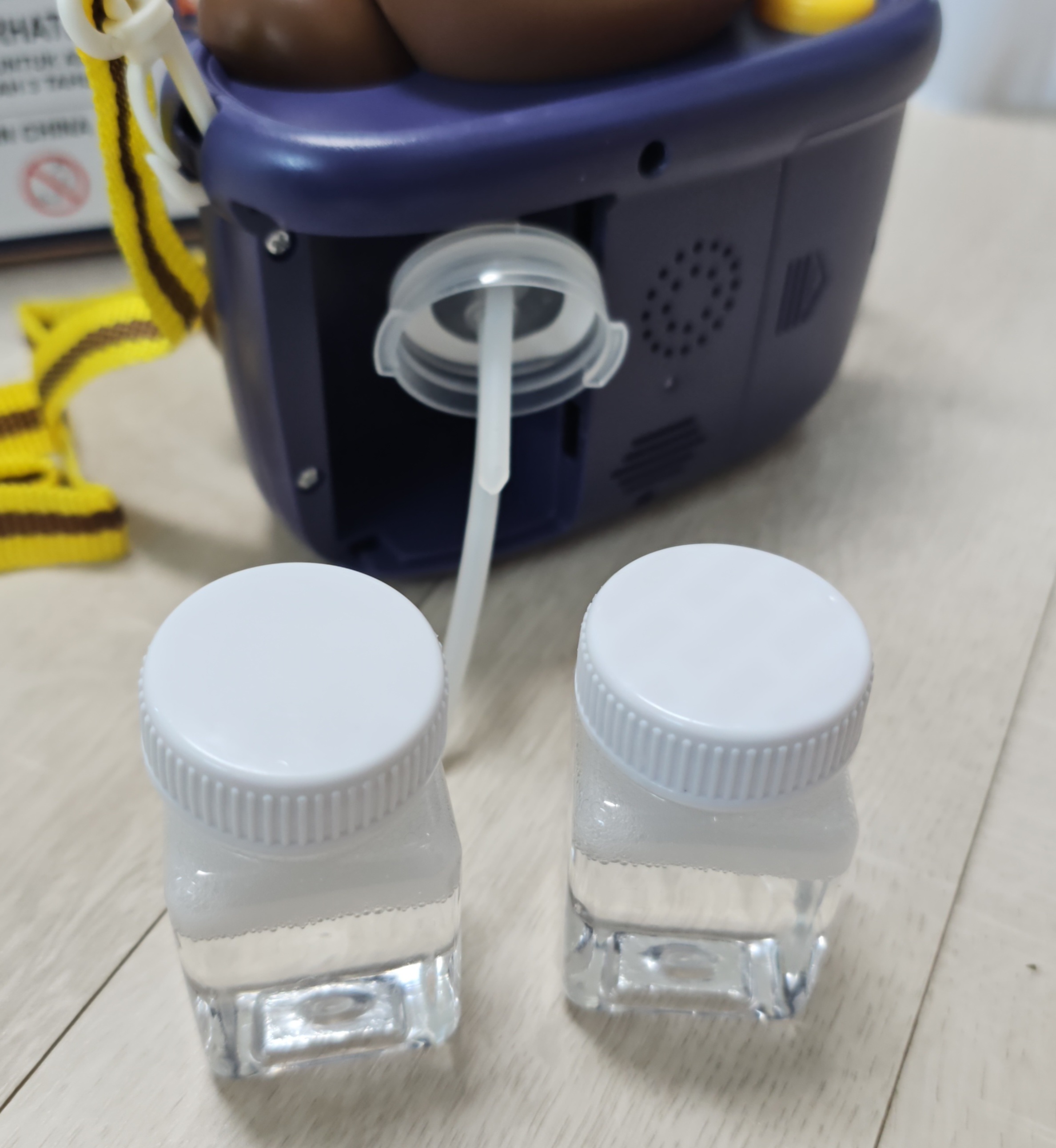 아마 저 뚜껑을 통해서 비눗방울 용기를 연결하나 봅니다