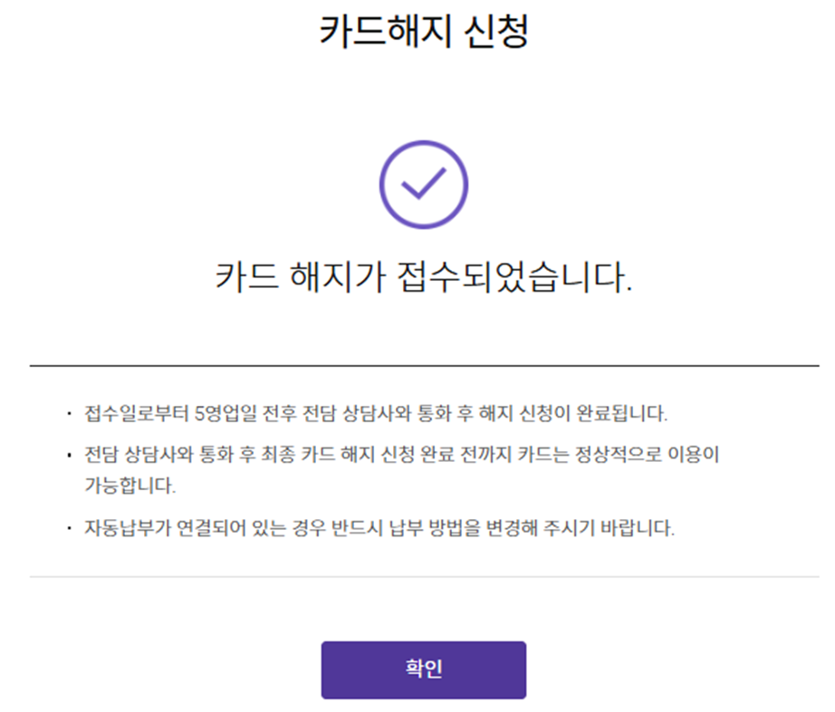 카드해지에 대한 신청만 완료 되었네요.