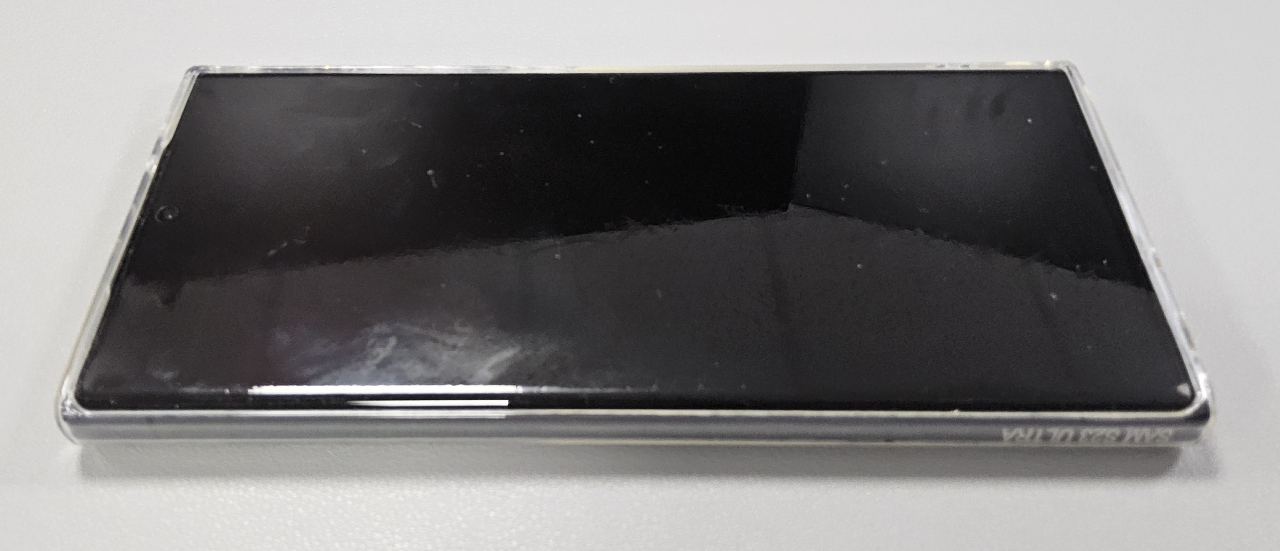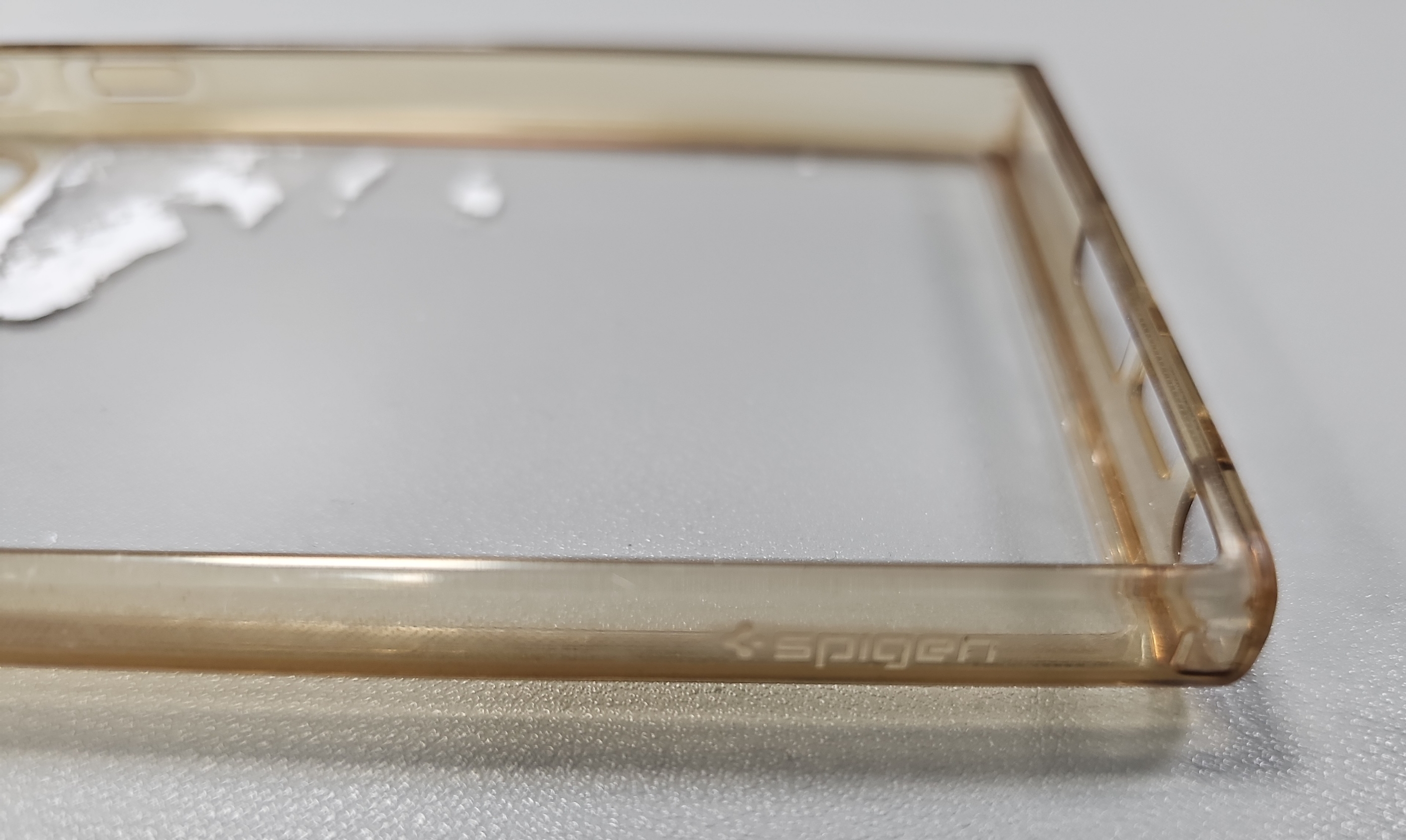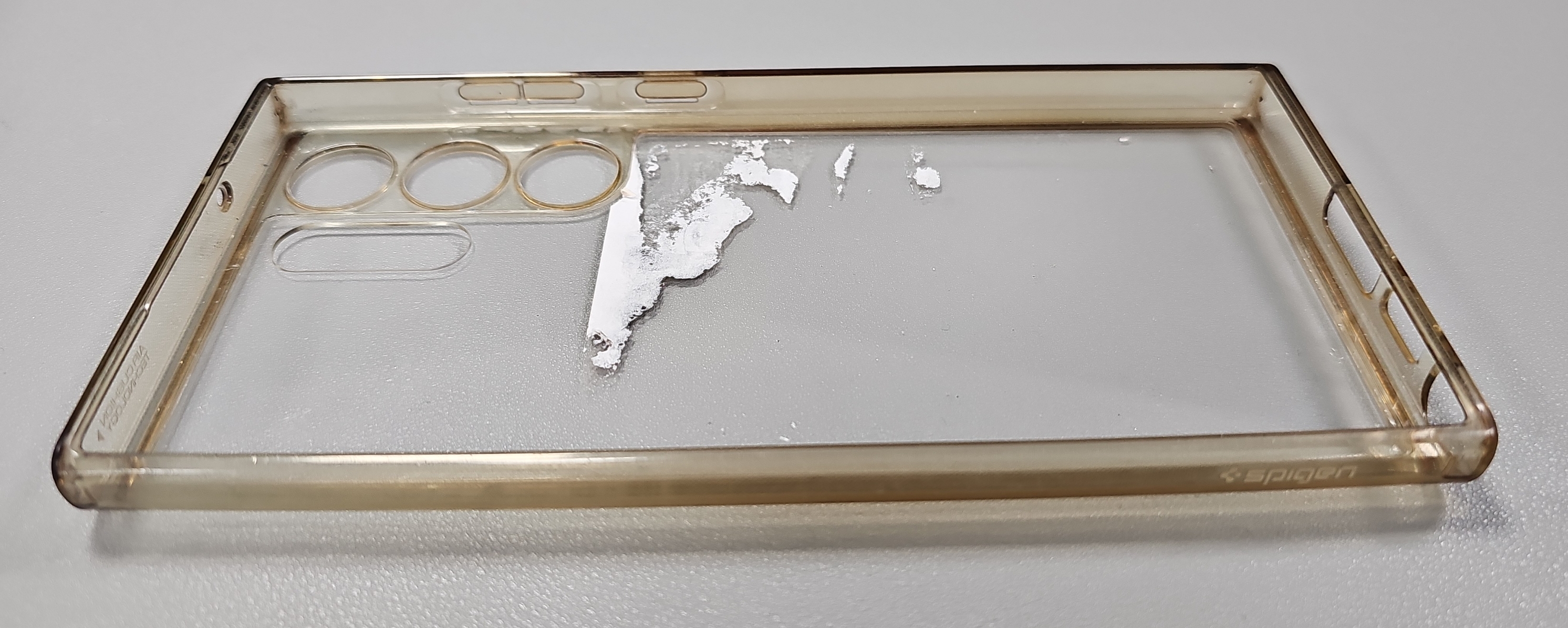 폰케이스에 넣어둔 영수증이 붙어버린 흔적이에요