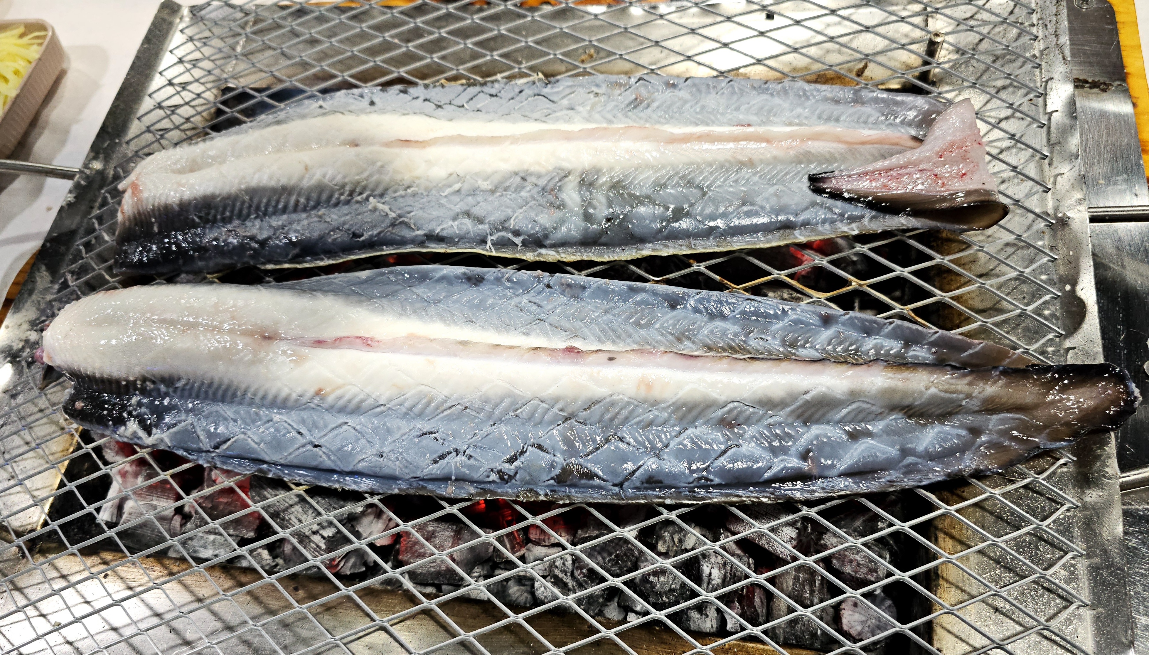 석쇠에 누워있는 민물장어 입니다.