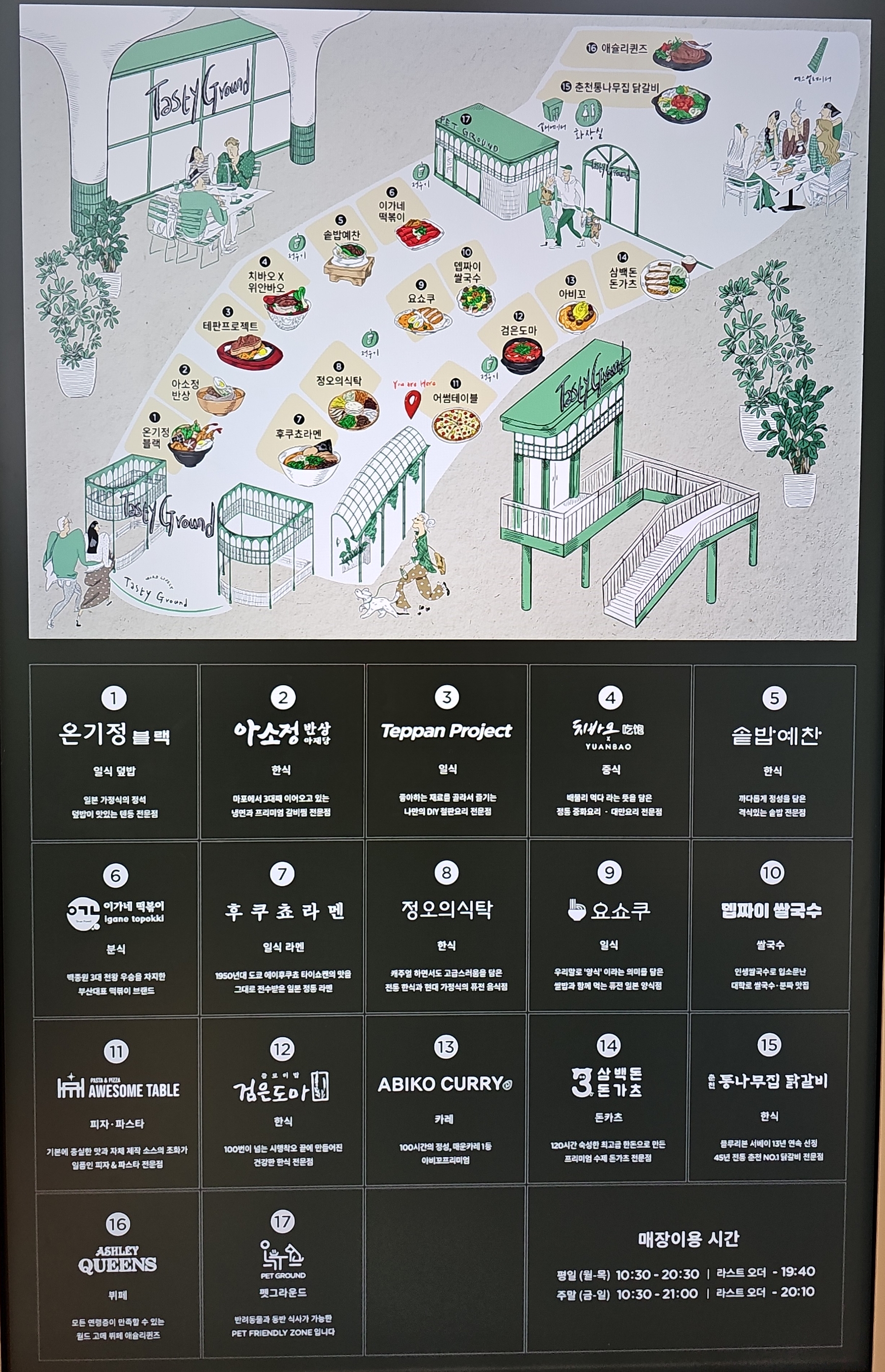 남자는 공복을 해결하기 위해서, 기로아 2층에 새로 생긴 "테이스티 그라운드"라는 긴 이름의 푸드코트를 방문 했습니다.