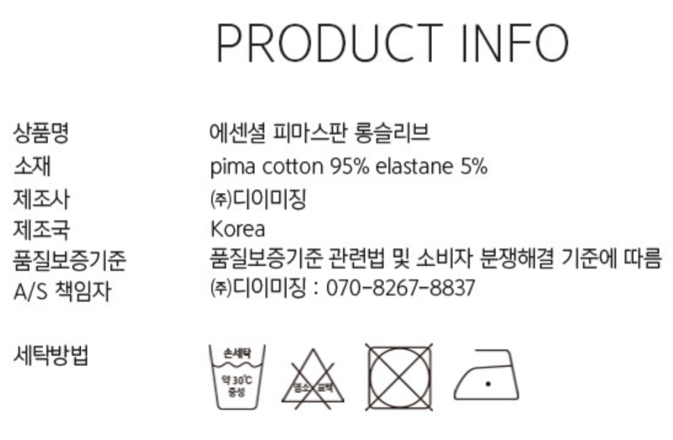 "에센셜 피마스판 20수 미니멀룩 세미 오버핏 무지 긴팔티 롱티셔츠"
