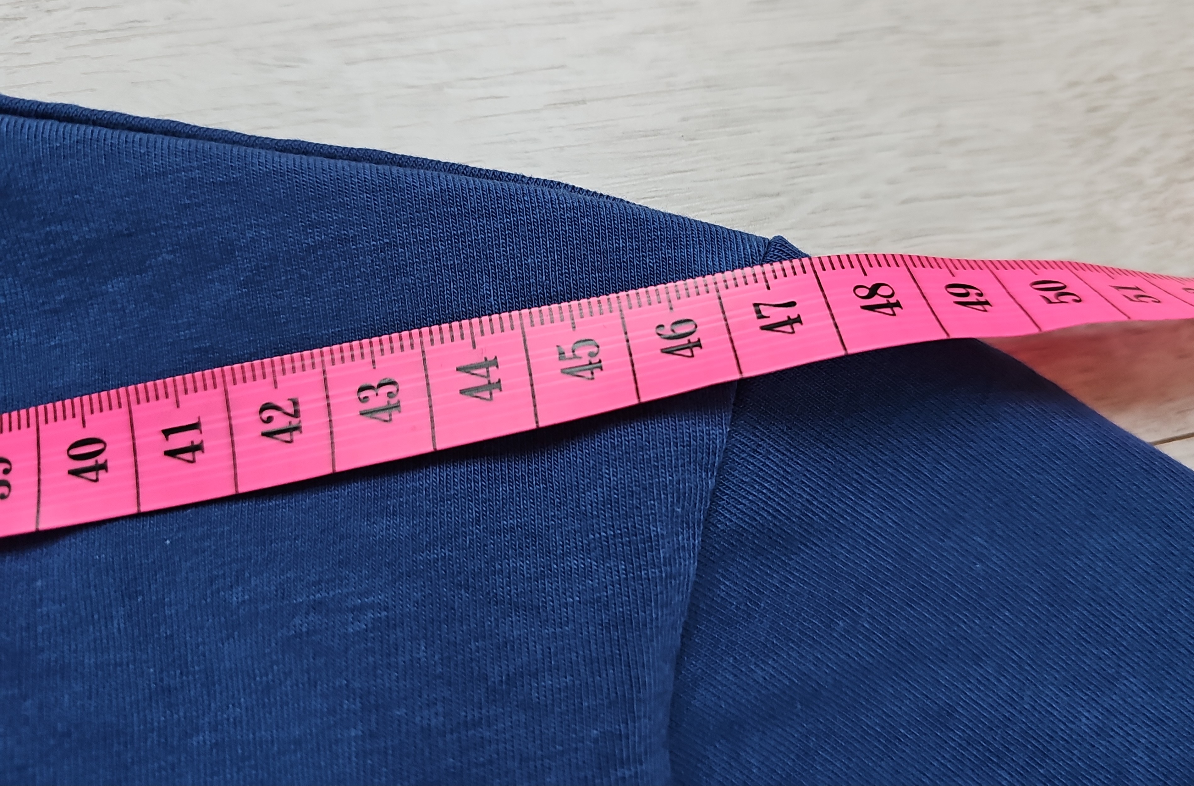 남자는 긴소매 티셔츠를 인터넷에서 구입했습니다.