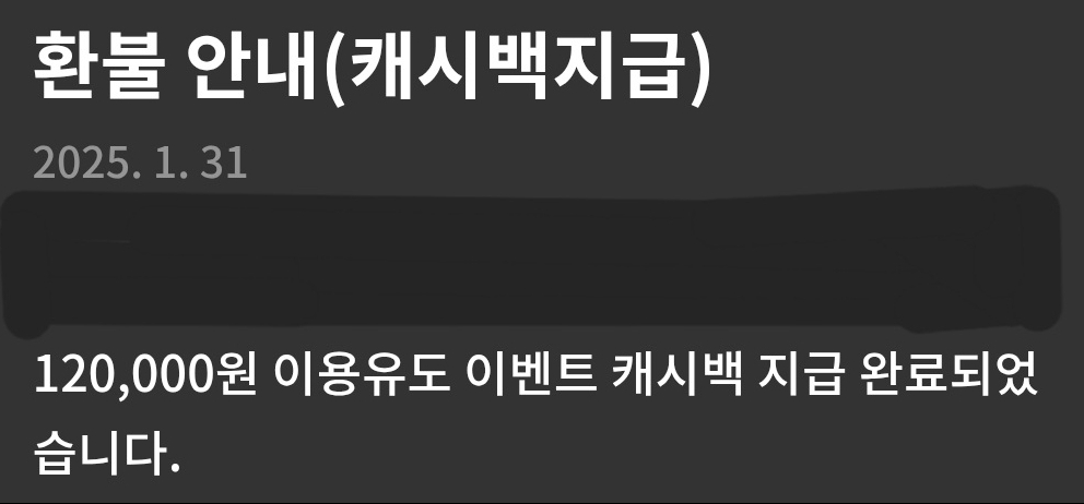 캐시백은 2회에 걸쳐서 지급되었습니다