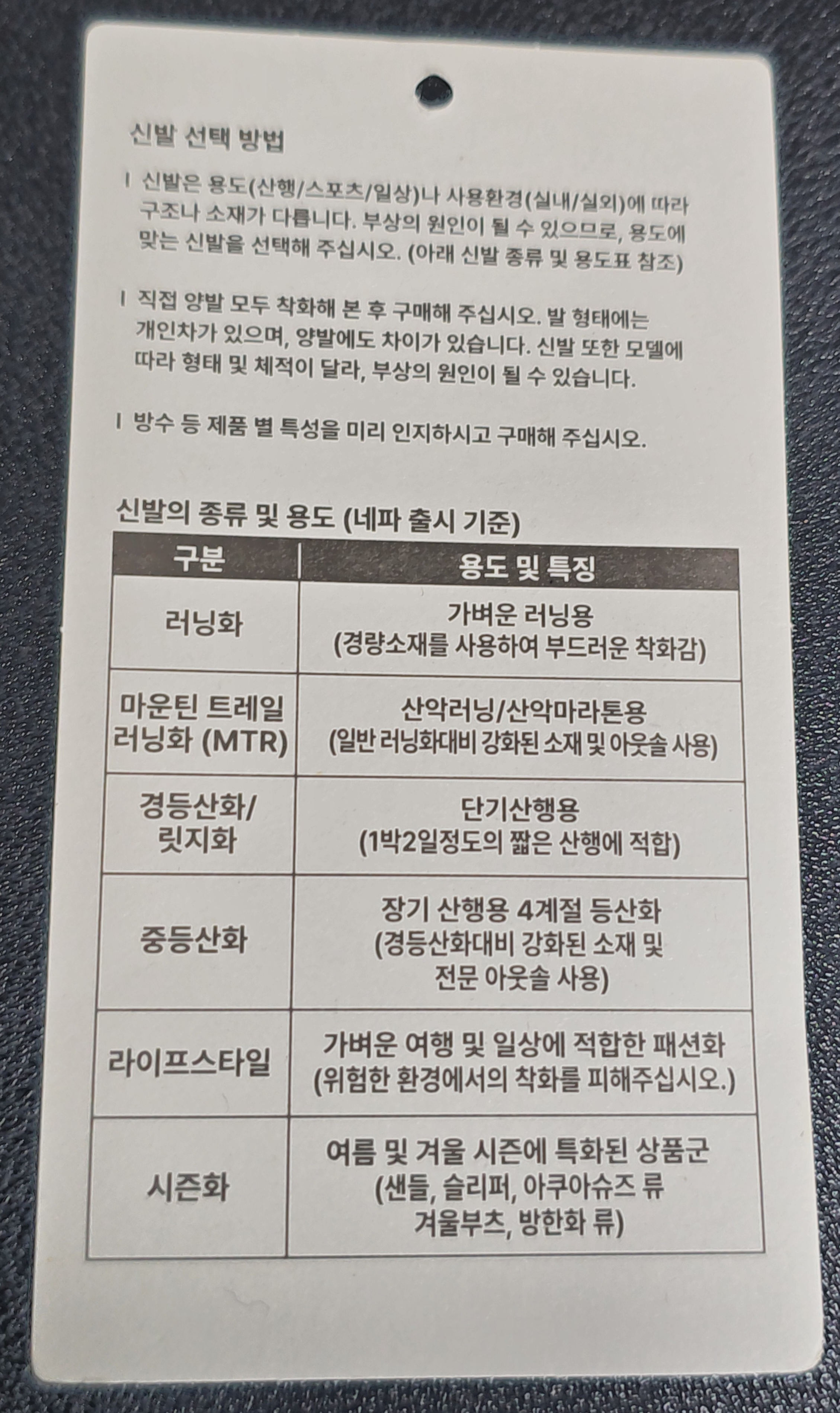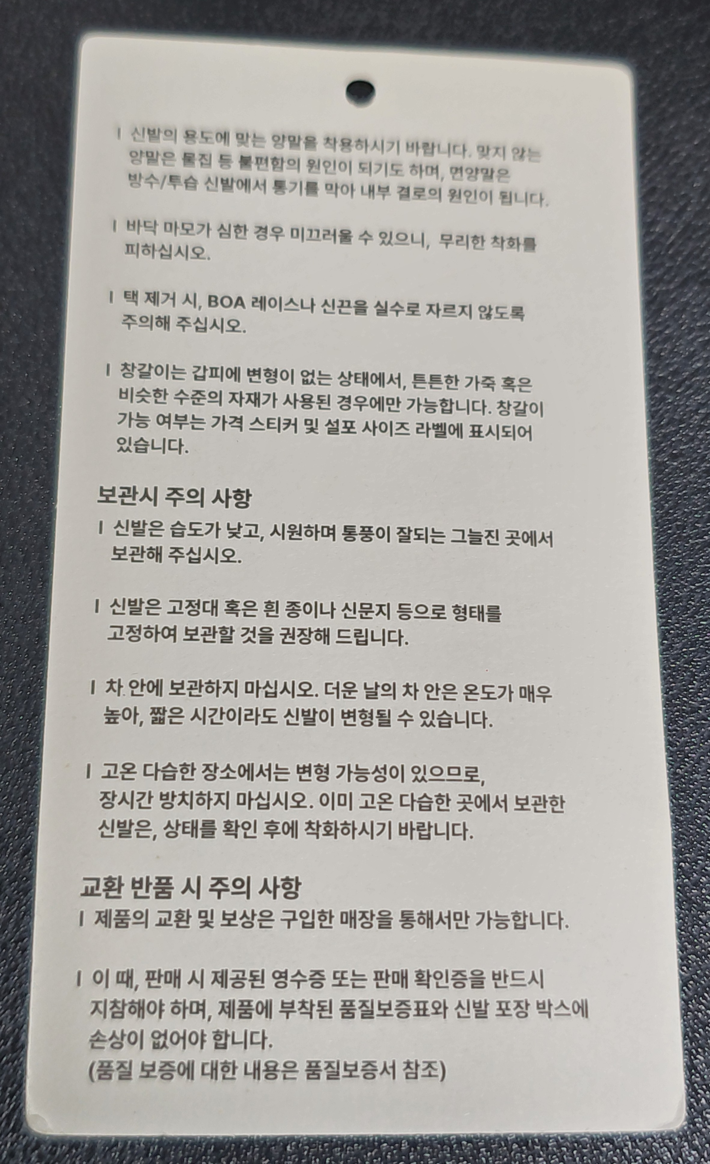 신발에 대한 중요한 정보입니다.
