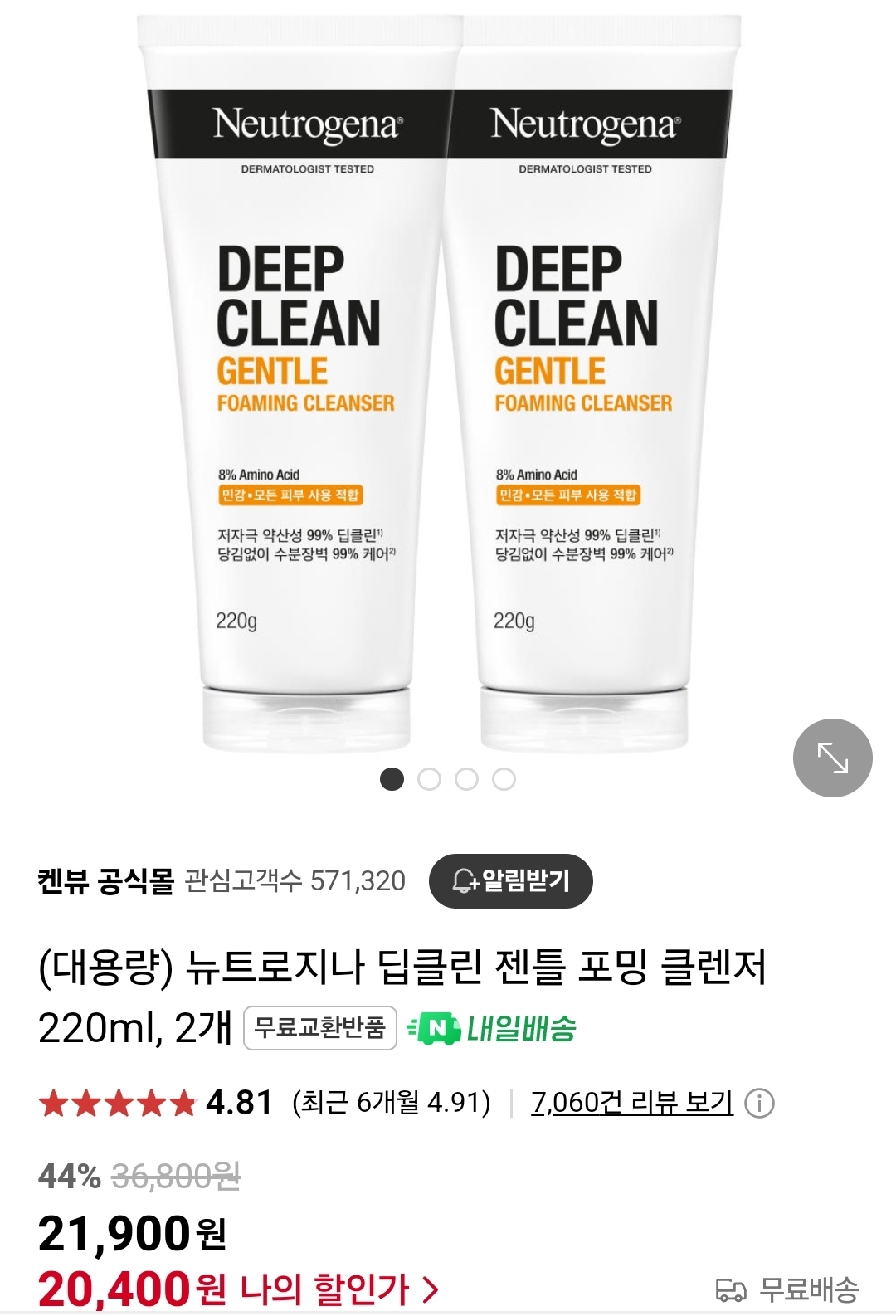 남자는 "뉴트로지나 딥클린 젠틀 포밍 클렌저" 구매했습니다.