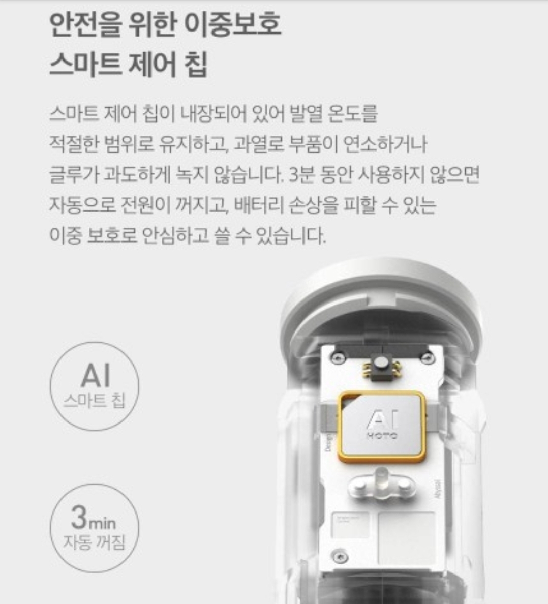 노즐쪽이 뜨거워서, 화상의 위험이 있는데